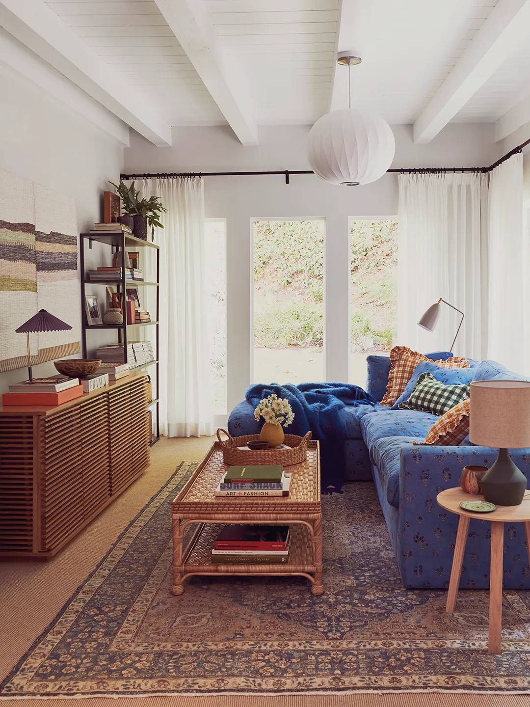 A faux marble coffee table looks 10x better when it’s styled with a chunky wood tray and a wool throw nearby. The more texture around it, the less it screams “fake.” The side table and the bookshelf in the far left corner are from IKEA. Despite the presence of budget-friendly ‘fast furniture,’ the space still feels sophisticated and cozy, thanks to the layered textures: Rug, woven baskets, and linen wall art! 4. DIY Your Way UpThe best way to elevate a faux piece is to DIY it. Swap hardware on IKEA furniture. Paint laminate in a muted, chalky tone. Add trim, re-stain, or style it to your heart's content. 5. Composition Trumps MaterialsHere’s the secret that beats expensive materials every time: Composition. Even a space full of budget pieces can feel expensive if it’s: